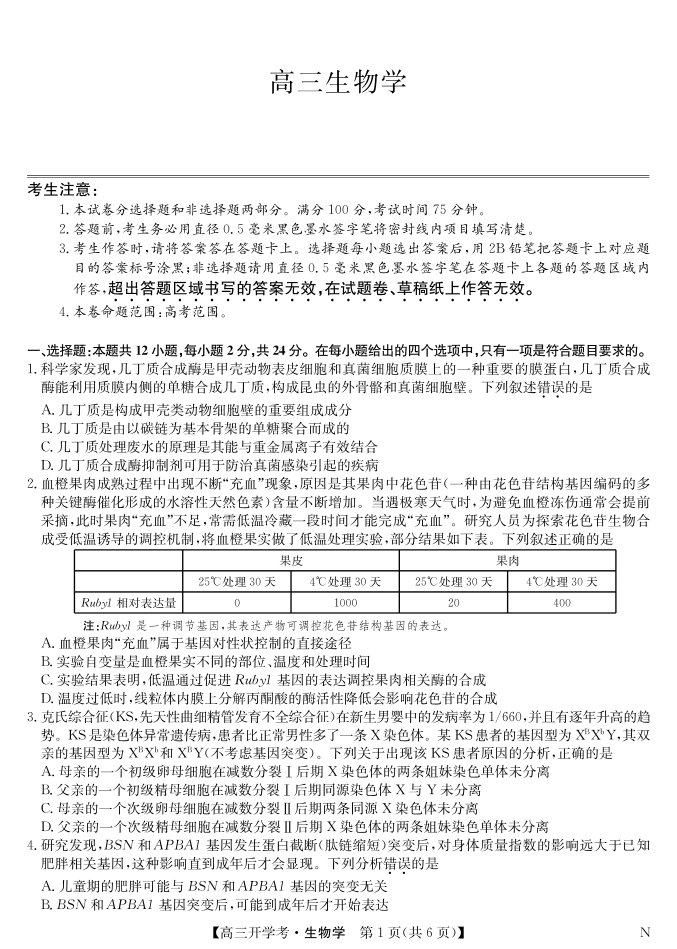 九师联盟2025届高三下学期2月开学考试 生物.pdf