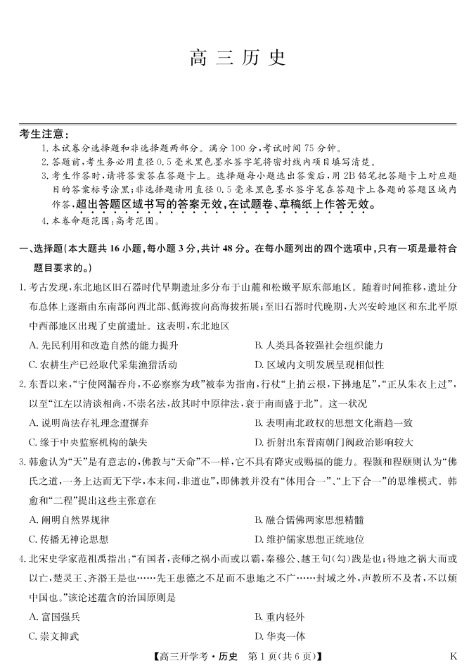 九师联盟2025届高三下学期2月开学考试 历史.pdf