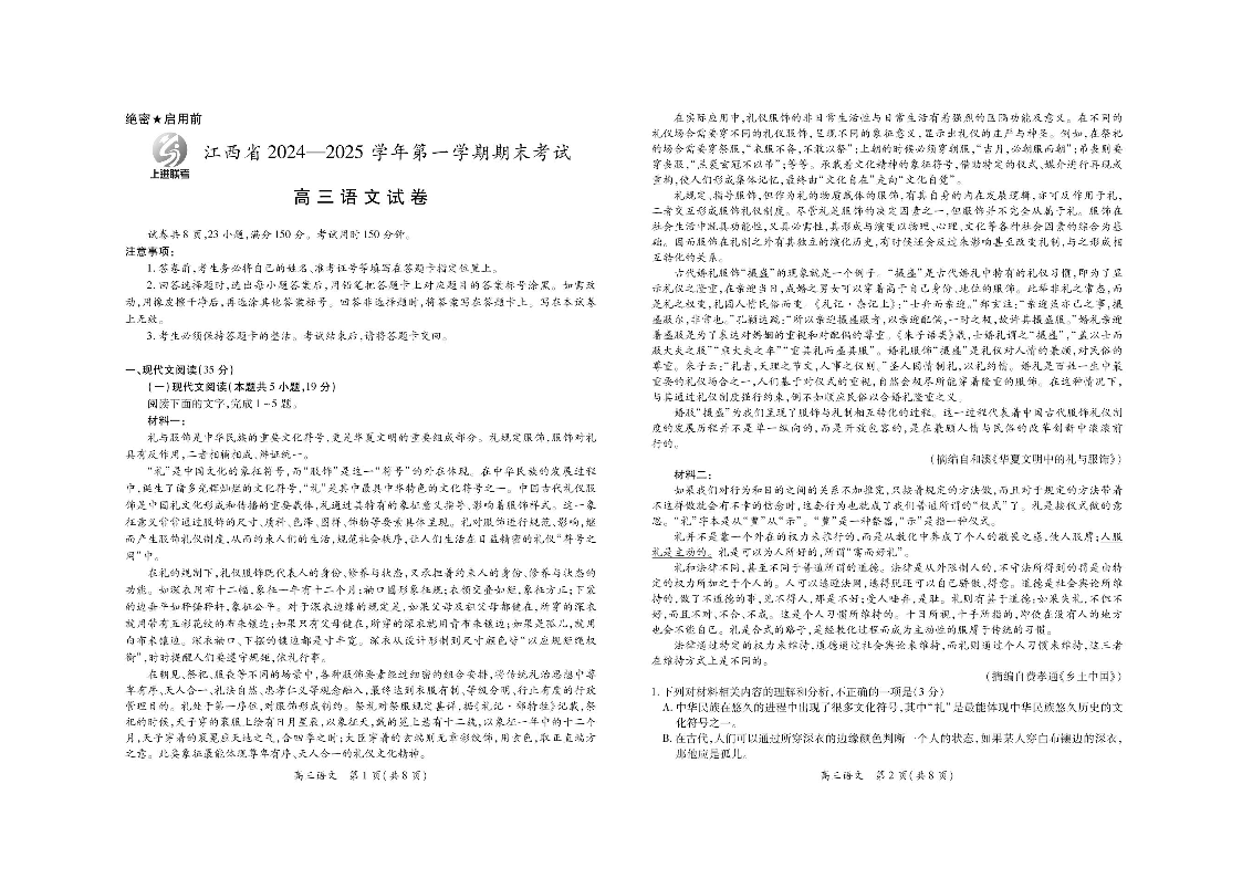 江西省上进联考2024-2025学年高三2月统一调研测试 语文.pdf