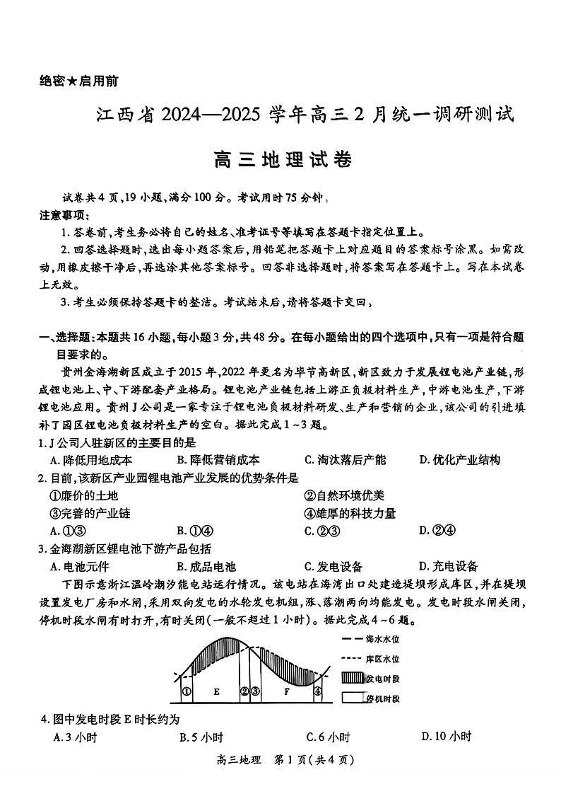 江西省上进联考2024-2025学年高三2月统一调研测试 地理.pdf