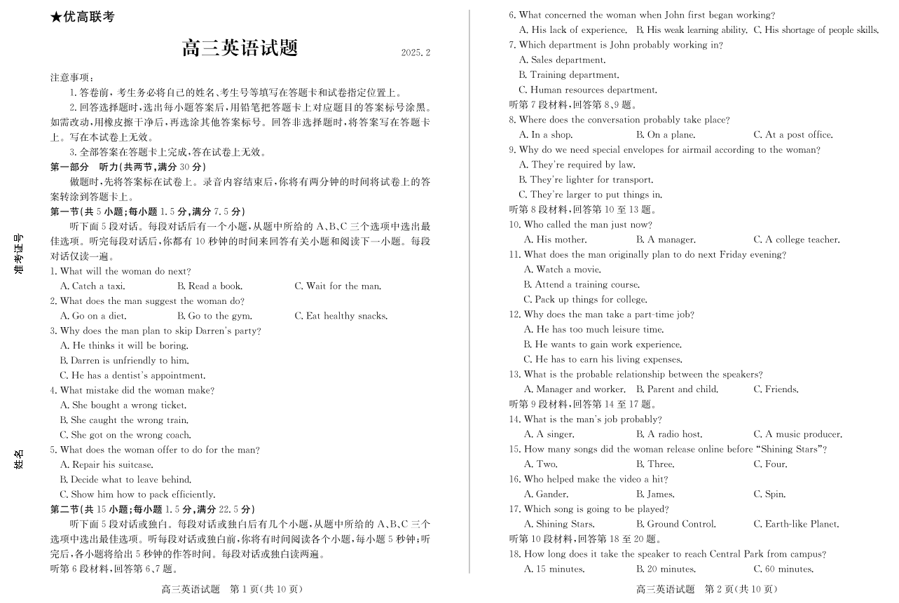 山东省德州市2024-2025学年高三2月开学考试 英语.pdf