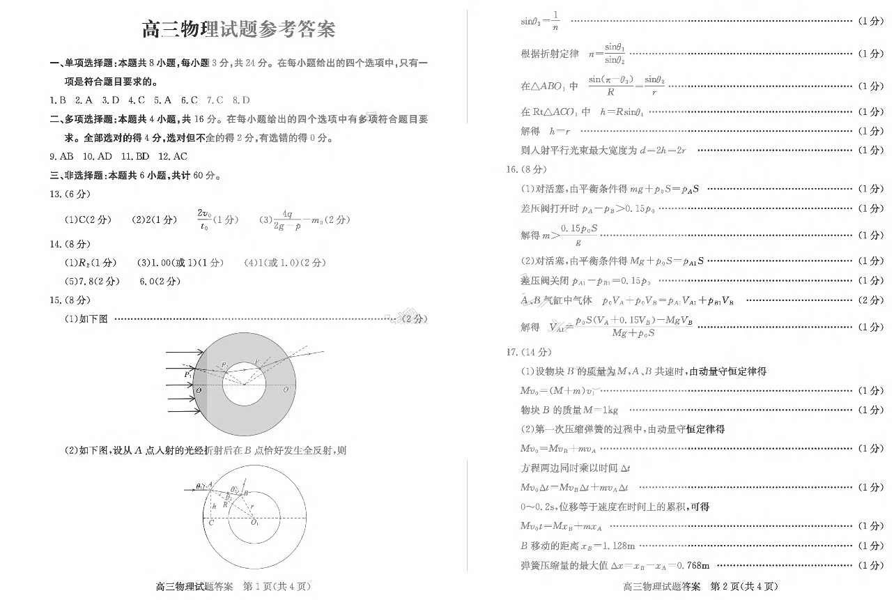 山东省德州市2024-2025学年高三2月开学考试 物理答案.pdf