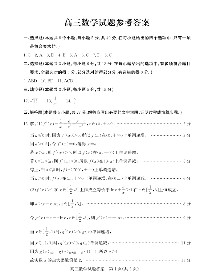 山东省德州市2024-2025学年高三2月开学考试 数学答案.pdf
