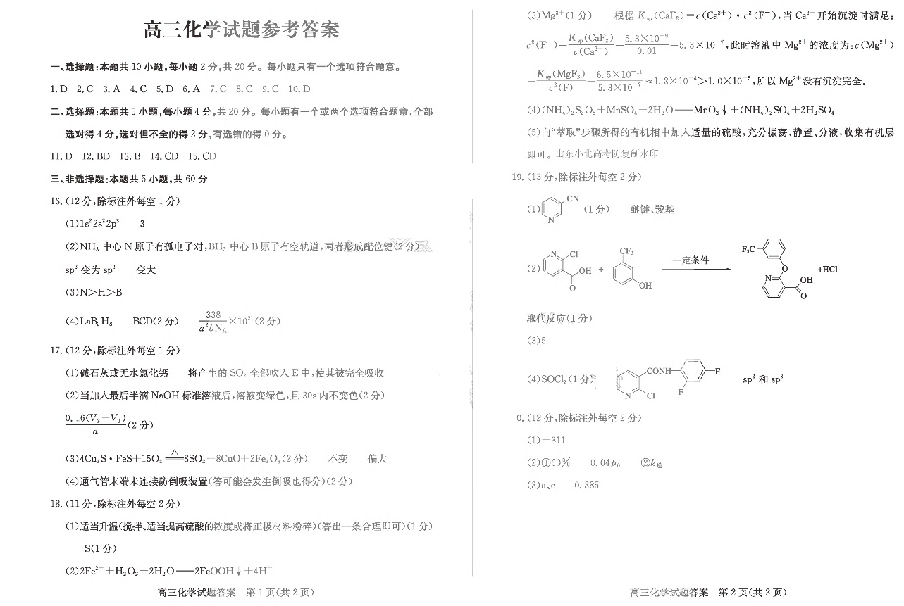 山东省德州市2024-2025学年高三2月开学考试 化学答案.pdf