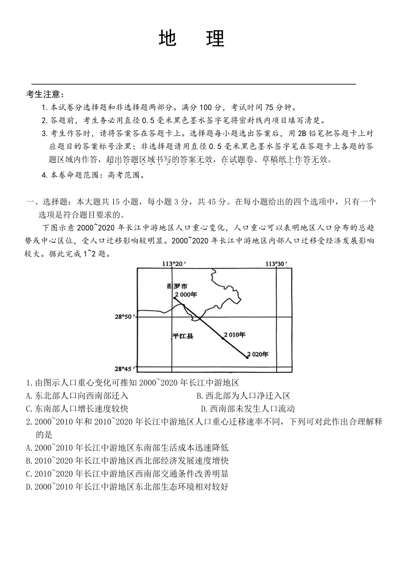 山西省卓越联盟2024-2025学年高三下学期2月开学质量检测 地理.pdf