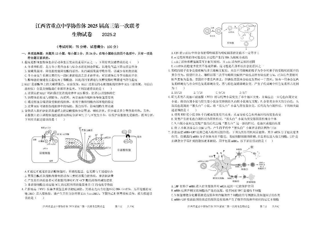 江西省重点中学协作体2025届高三第一次联考 生物.pdf
