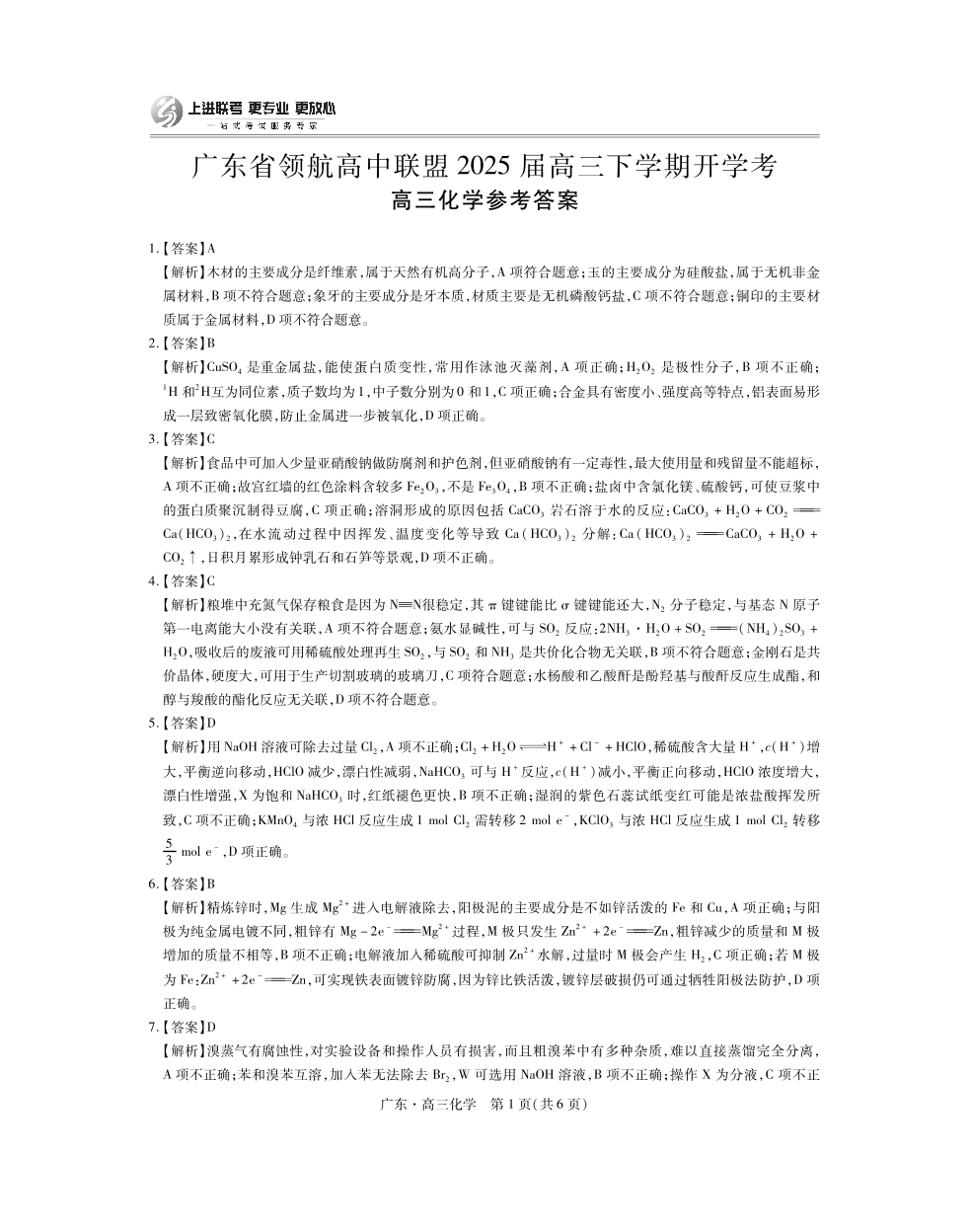 广东省领航高中联盟2025届高三下学期开学考 化学答案.pdf