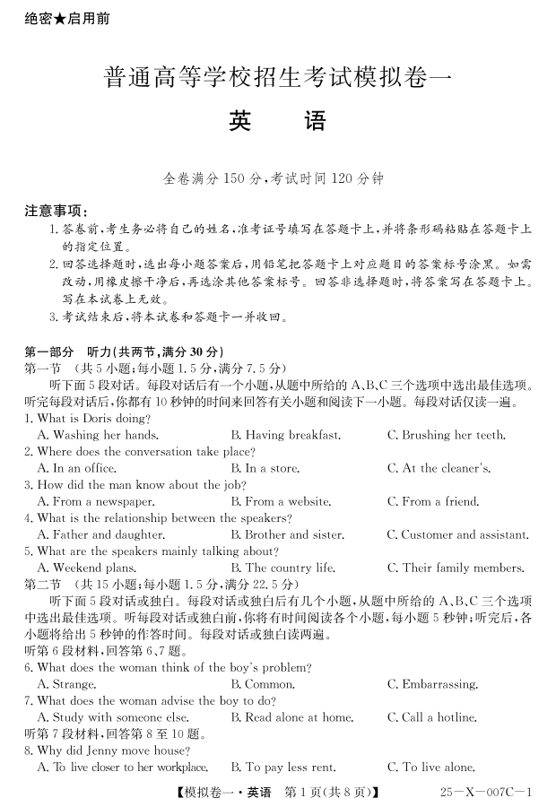 河南省新高中创新联盟2025届高三模拟卷一 英语.pdf