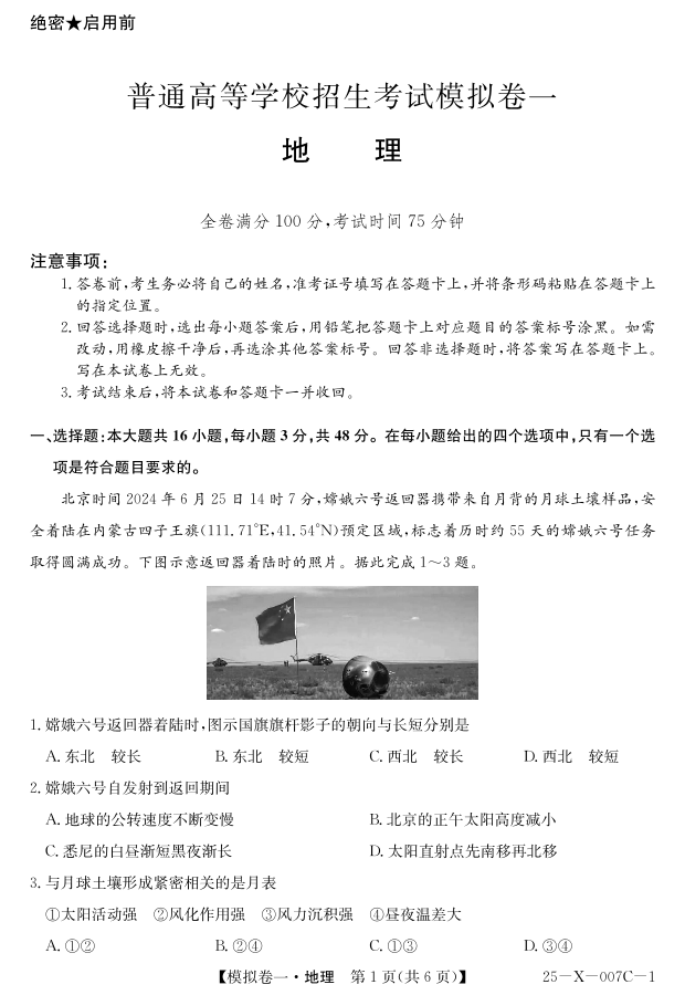 河南省新高中创新联盟2025届高三模拟卷一 地理.pdf