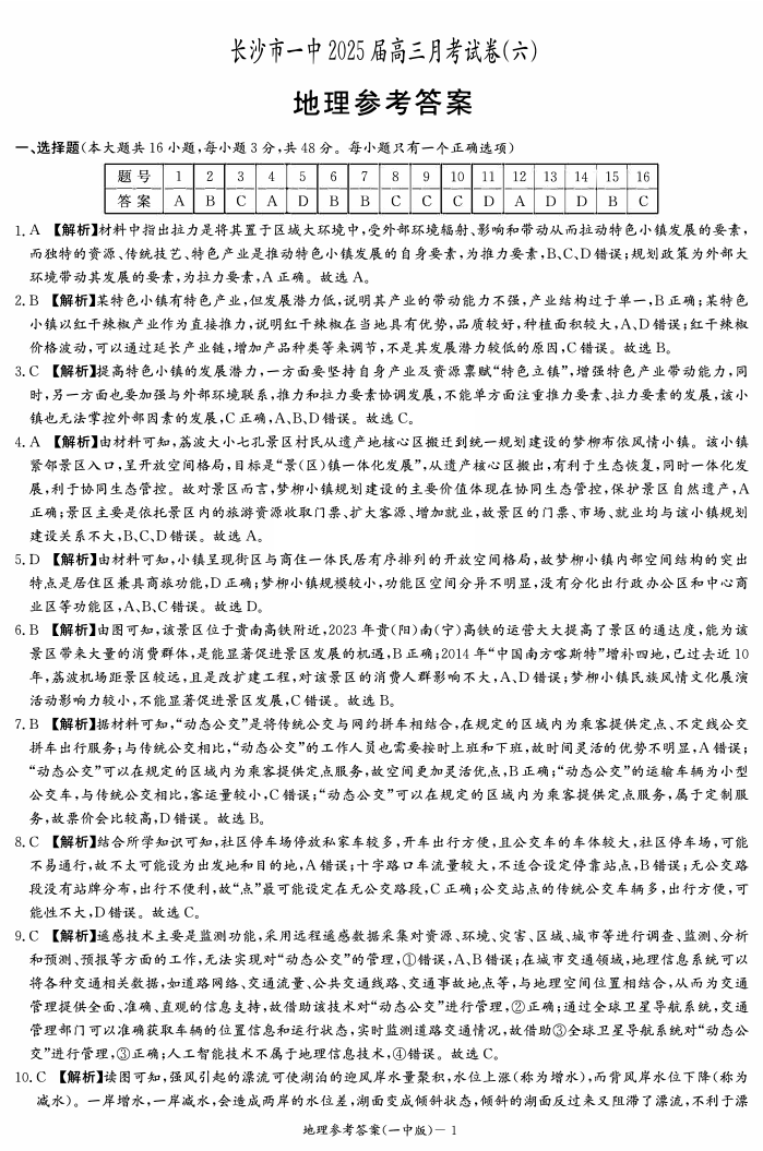 湖南省长沙市一中2025届高三月考试卷(六)地理答案.pdf
