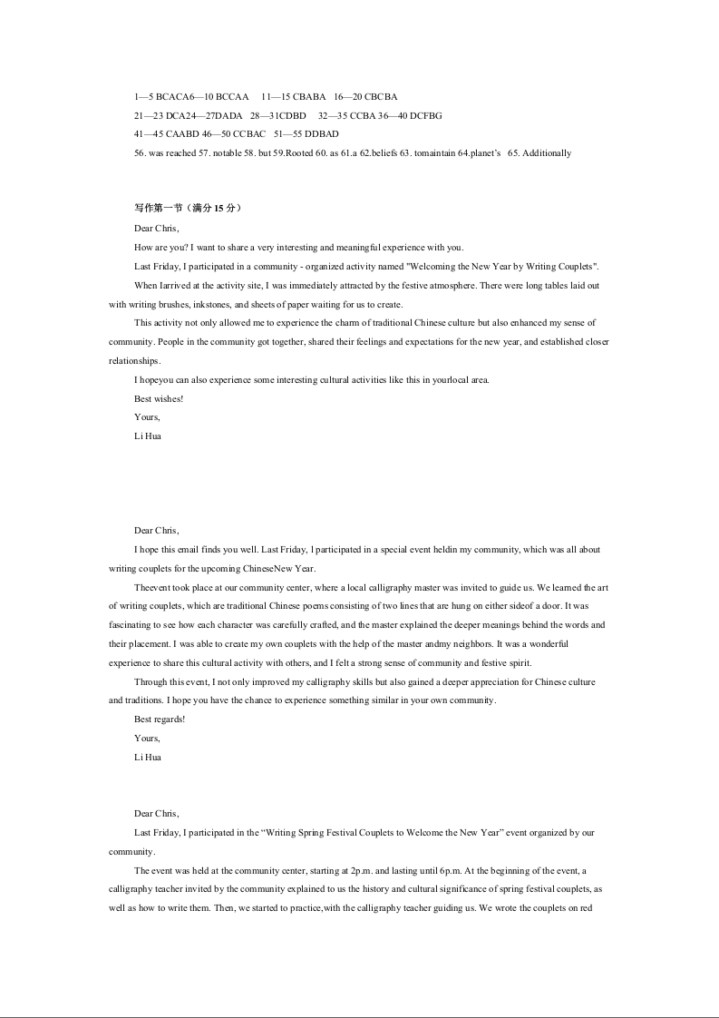 华中师大一附中2024-2025学年度高三下学期二月月度检测 英语答案.docx