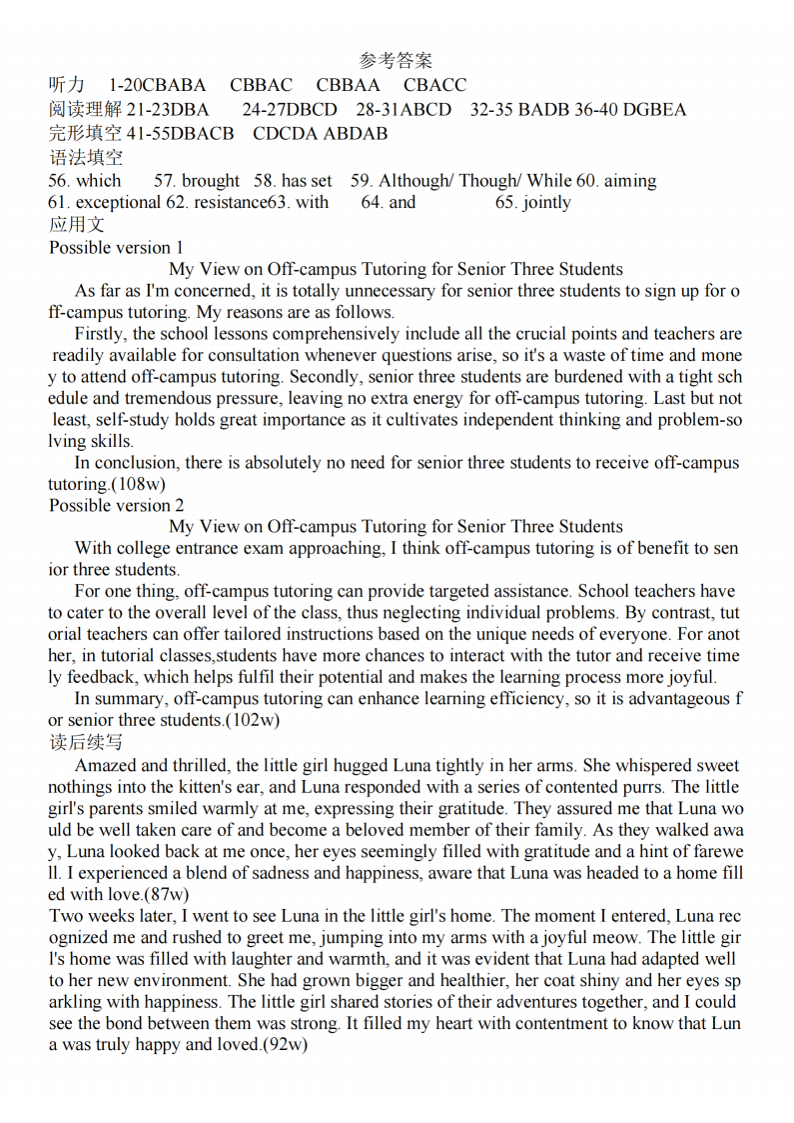 江苏省G4联考2025届高三年级2月阶段调研 英语答案.pdf