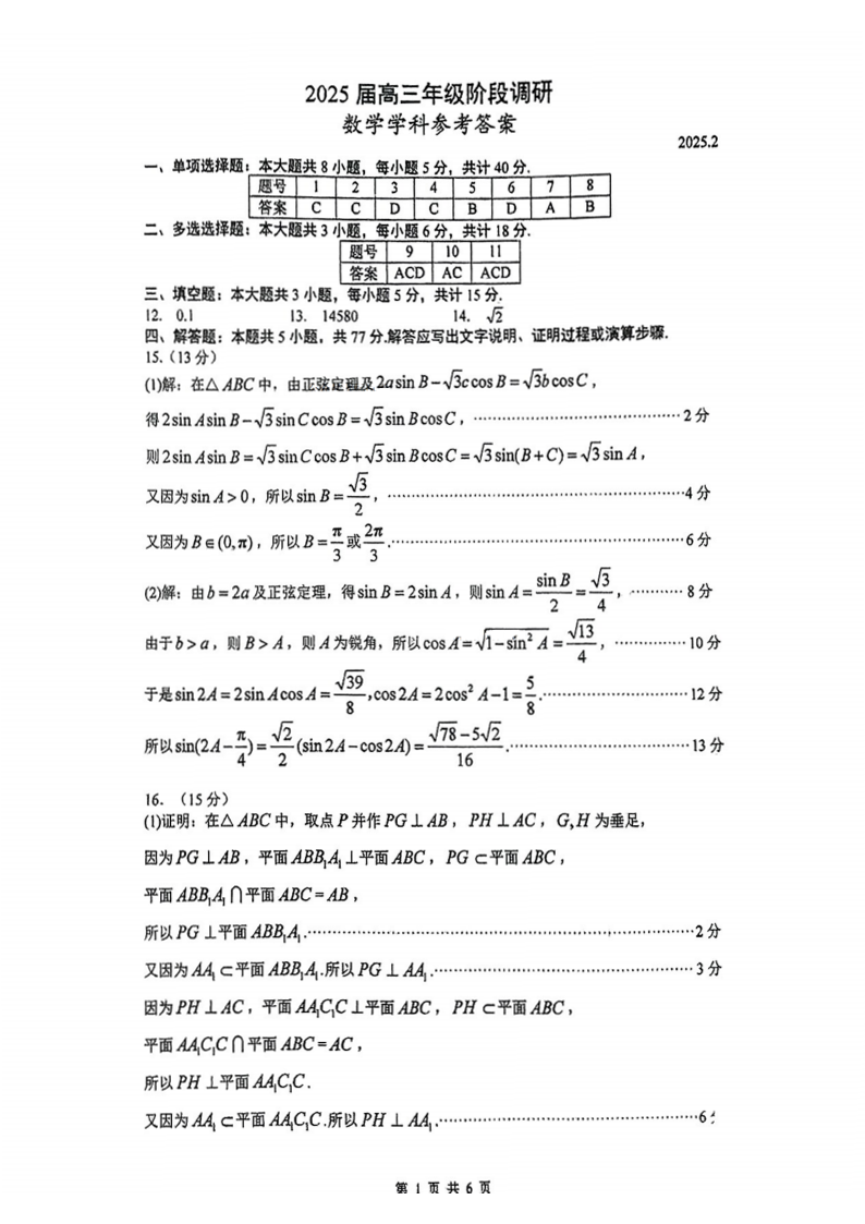 江苏省G4联考2025届高三年级2月阶段调研 数学答案.pdf