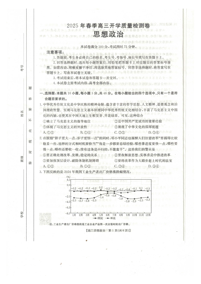 广西壮族自治区桂林2025届高三春季开学质量检测卷 政治.pdf