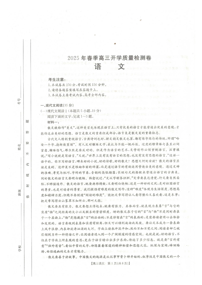 广西壮族自治区桂林2025届高三春季开学质量检测卷 语文.pdf