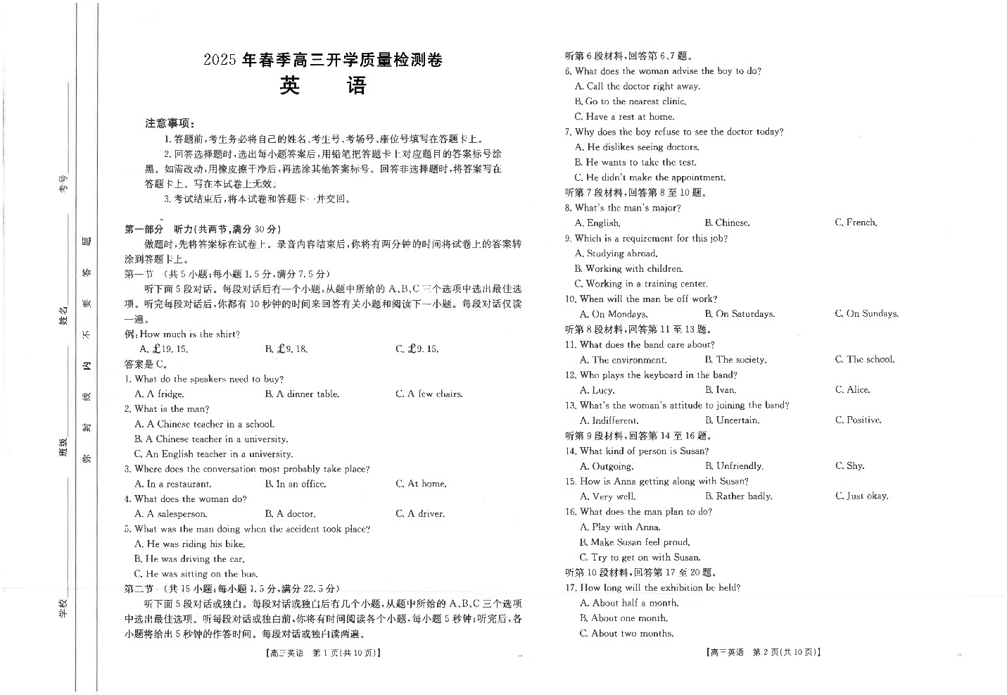 广西壮族自治区桂林2025届高三春季开学质量检测卷 英语.pdf