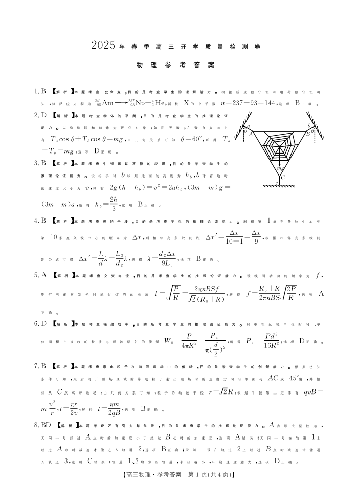 广西壮族自治区桂林2025届高三春季开学质量检测卷 物理答案.pdf