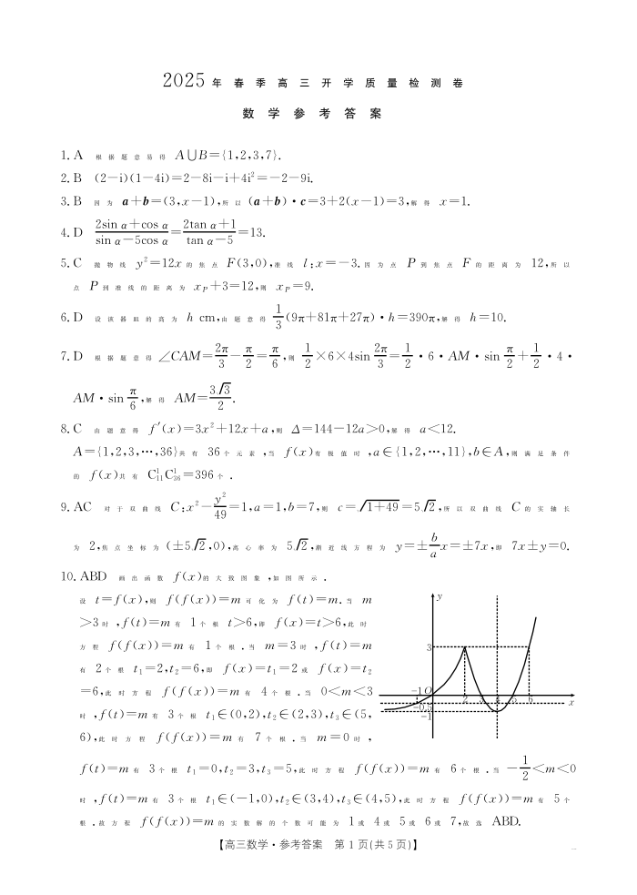 广西壮族自治区桂林2025届高三春季开学质量检测卷 数学答案.pdf
