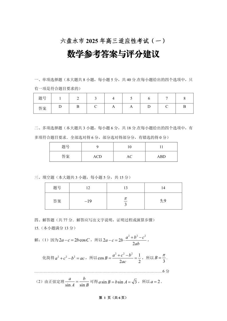 贵州省贵阳市2025年高三年级适应性考试(一)数学答案.pdf