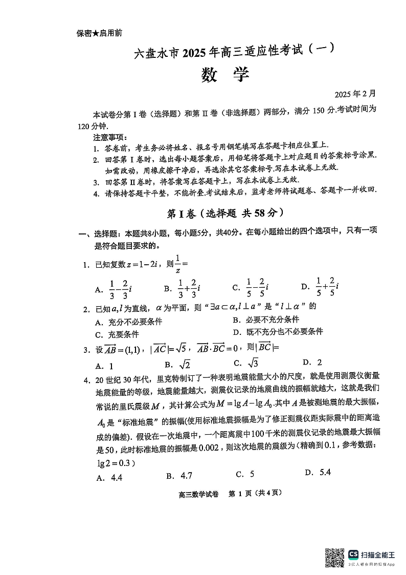 贵州省贵阳市2025年高三年级适应性考试(一)数学.pdf
