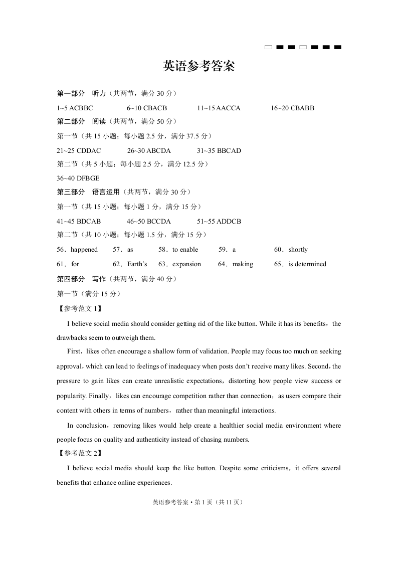 巴蜀中学2025届高考适应性月考卷(五)英语-答案.pdf