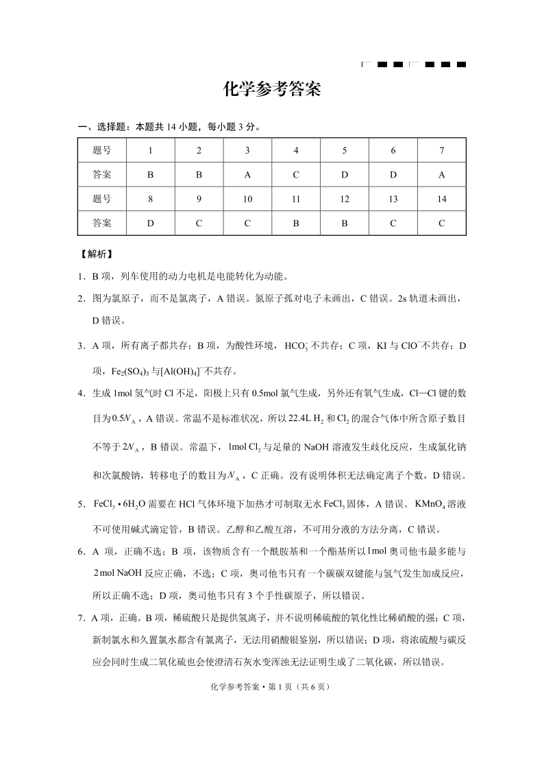 巴蜀中学2025届高考适应性月考卷(五)化学-答案.pdf