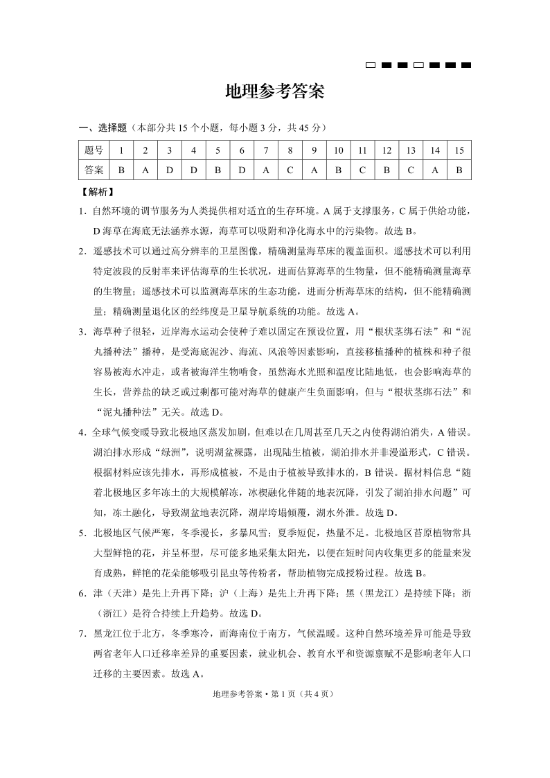 巴蜀中学2025届高考适应性月考卷(五)地理-答案.pdf