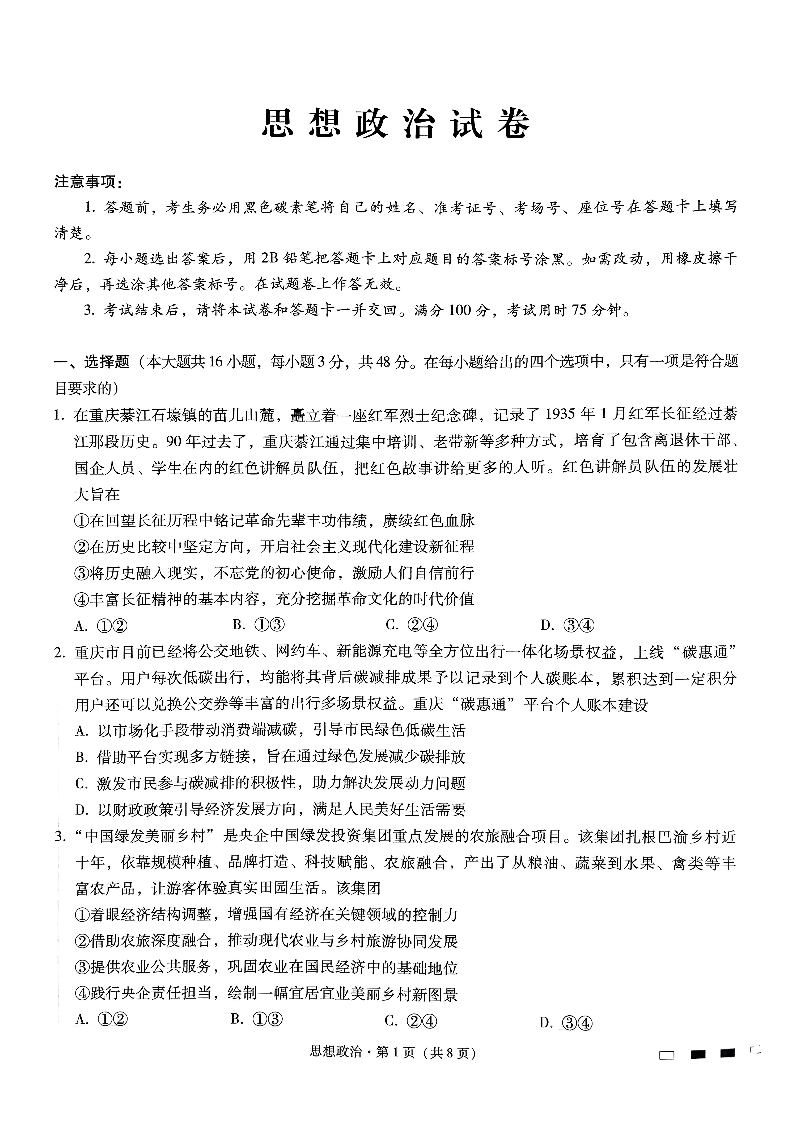 巴蜀中学2月月考政治试卷.pdf