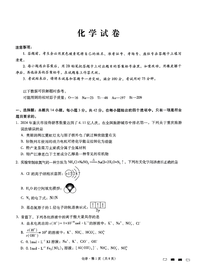 巴蜀中学2月月考化学试卷.pdf