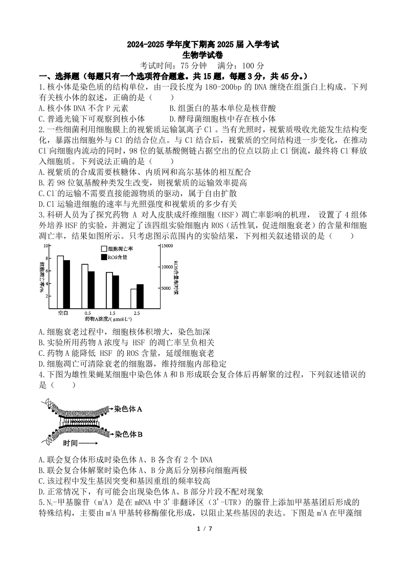 四川省成都市第七中学2025届高三下学期2月入学考试 生物.pdf