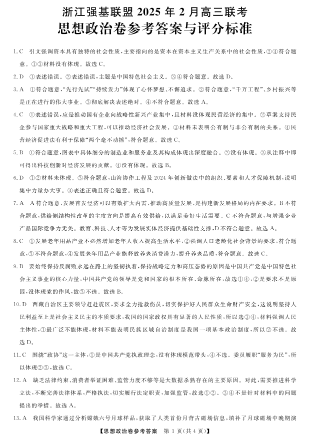 高三强基2月联考卷--政治答案.pdf