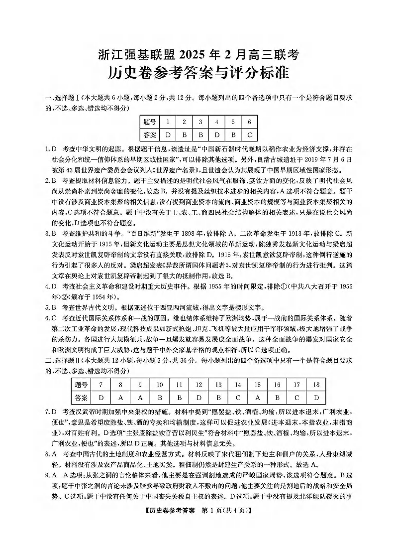 高三强基2月联考卷--历史答案.pdf