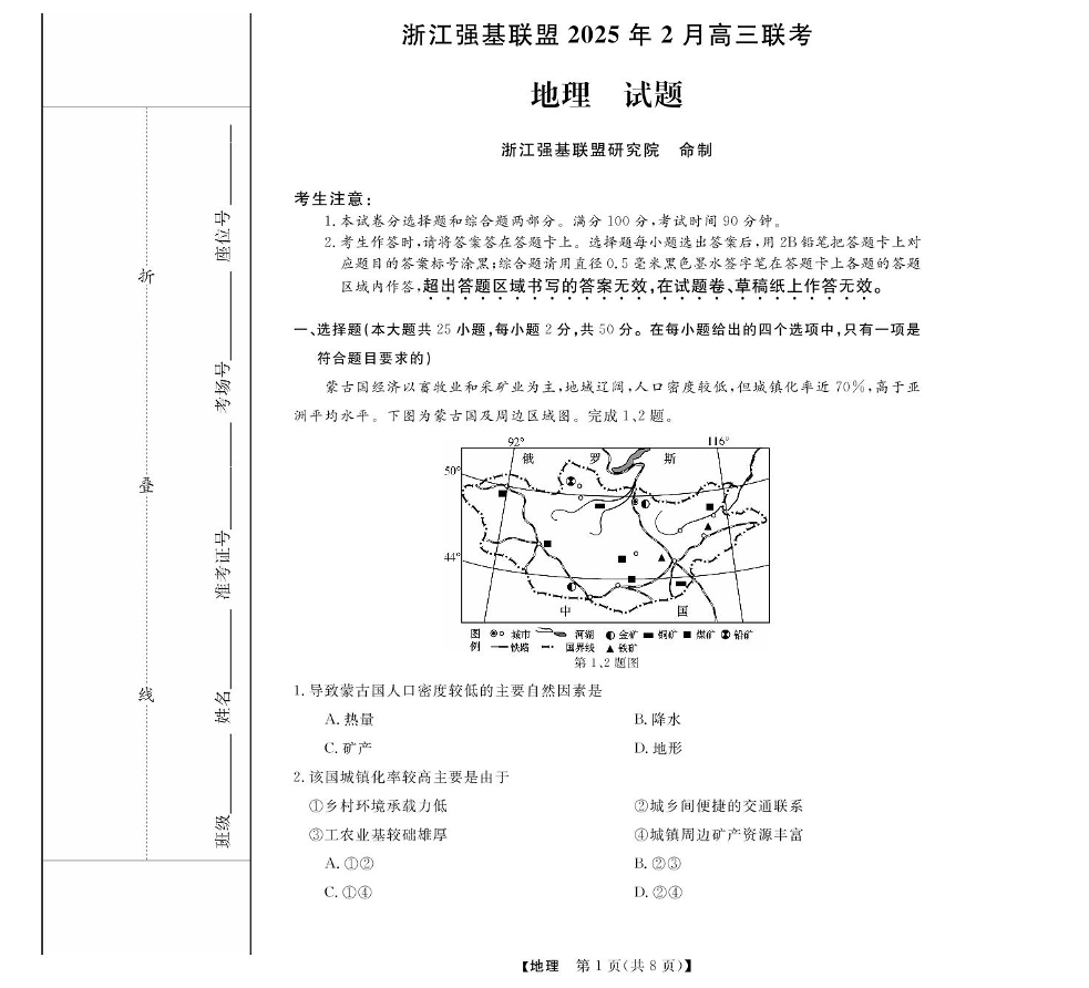 高三强基2月联考卷--地理.pdf