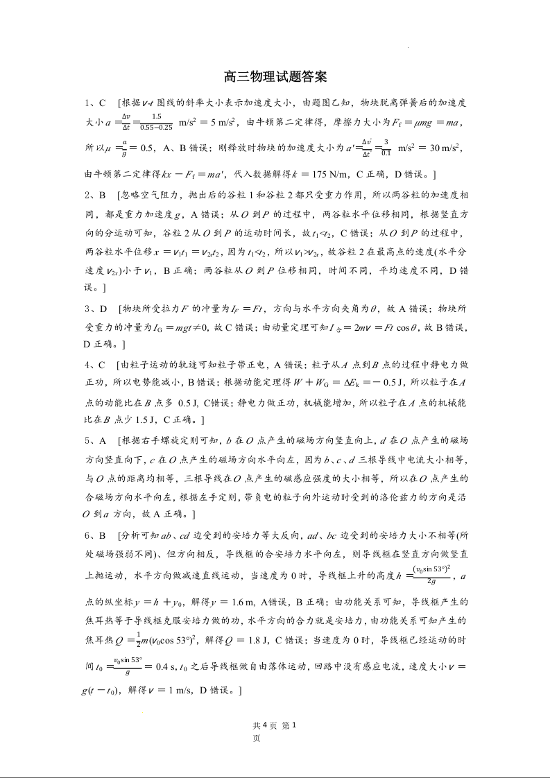 湖北省随州市部分高中2024-2025学年高三2月月考 物理答案.docx