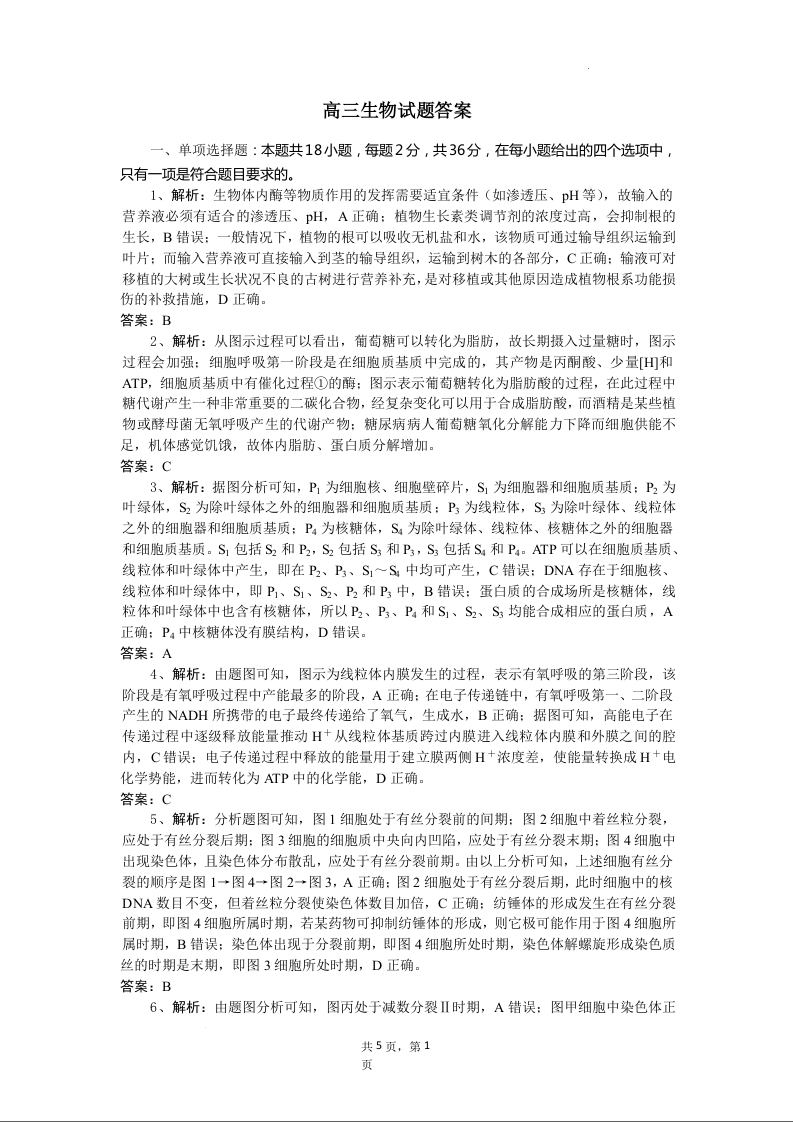 湖北省随州市部分高中2024-2025学年高三2月月考 生物答案.docx