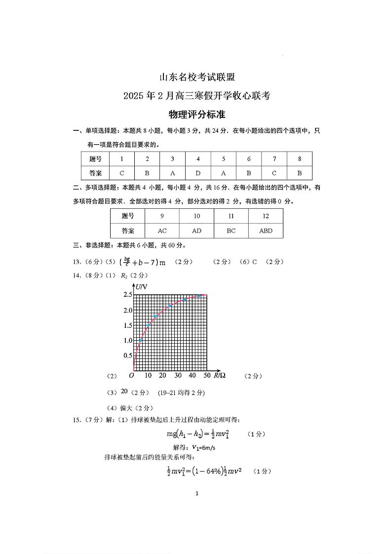 山东名校考试联盟2025年2月高三开学联考 物理答案.pdf