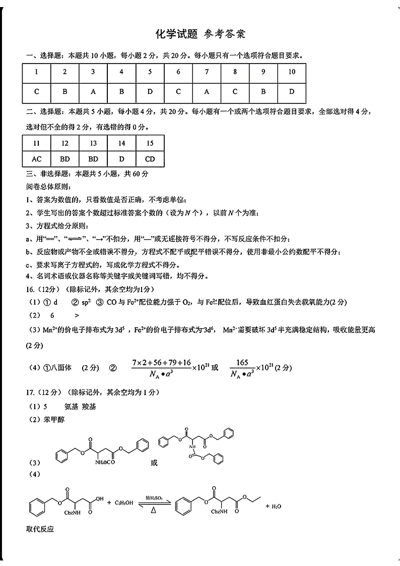山东名校考试联盟2025年2月高三开学联考 化学答案.pdf