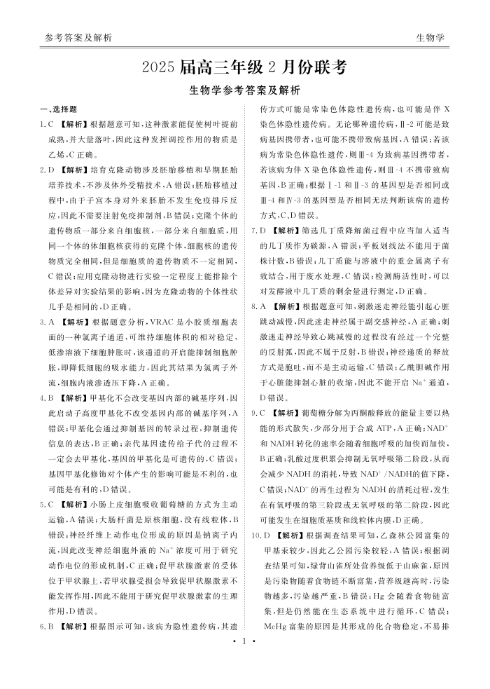 广东省衡水金卷2025届高三2月份大联考 生物答案.pdf