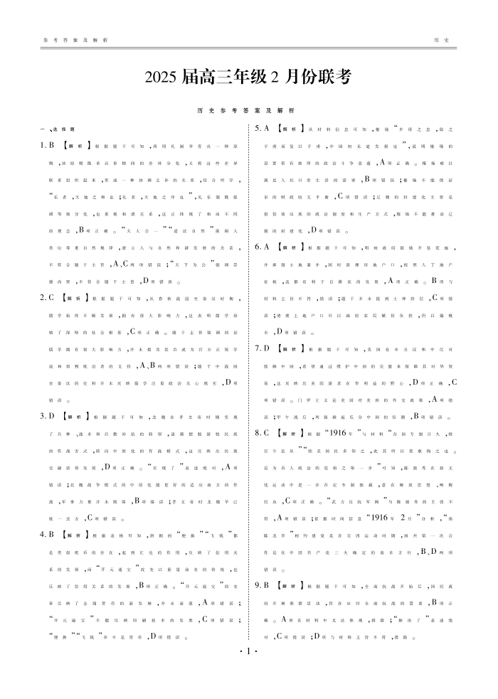 广东省衡水金卷2025届高三2月份大联考 历史答案.pdf