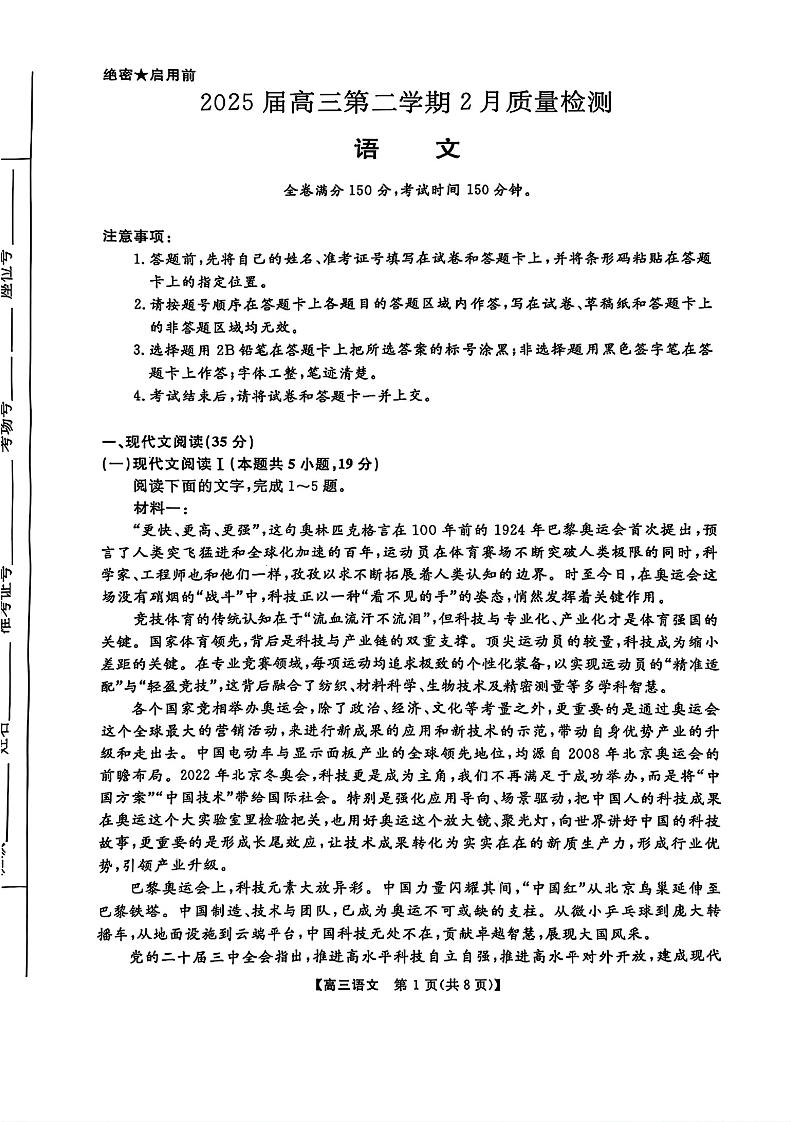 金科大联考2025届高三第二学期2月质量检测 语文.pdf