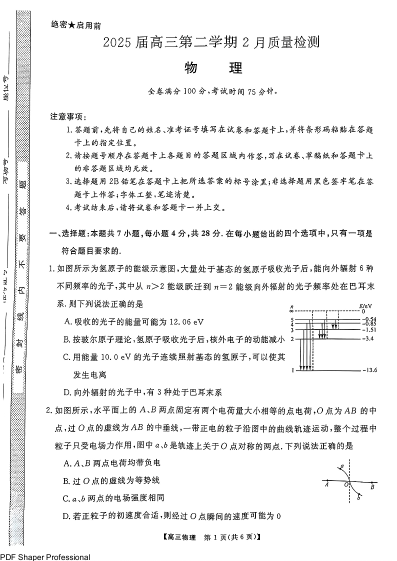 金科大联考2025届高三第二学期2月质量检测 物理.pdf