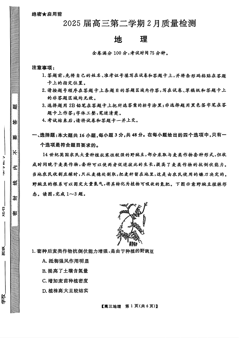 金科大联考2025届高三第二学期2月质量检测 地理.pdf