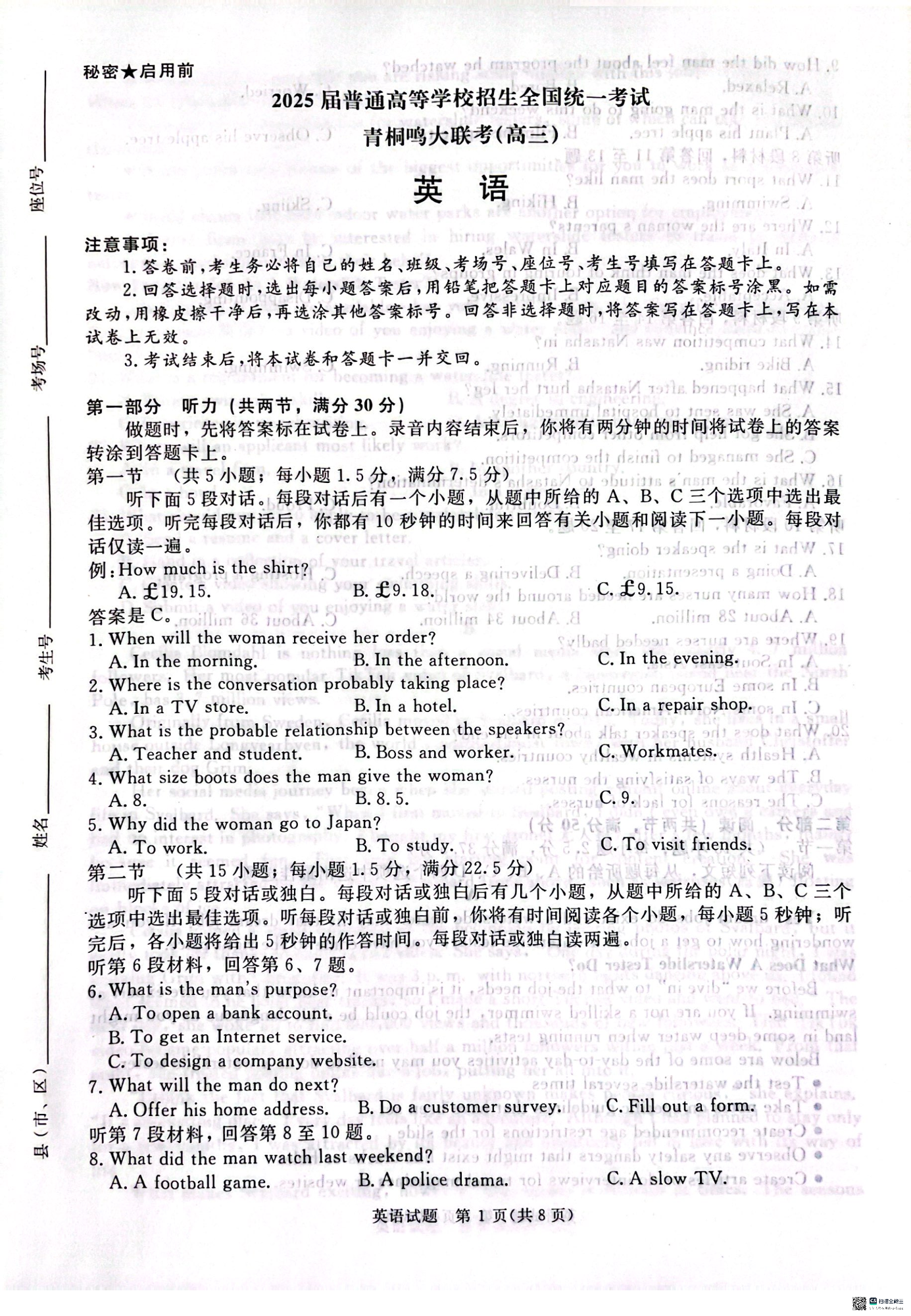 河南省青桐鸣2025年2月高三下学期开学考试 英语.pdf