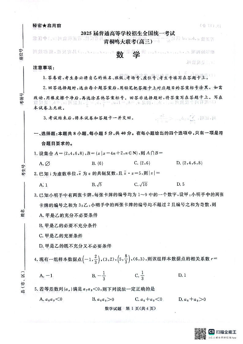 河南省青桐鸣2025年2月高三下学期开学考试 数学(含答案).pdf