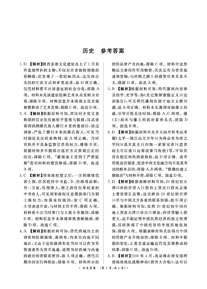 河南省青桐鸣2025年2月高三下学期开学考试 历史答案.pdf