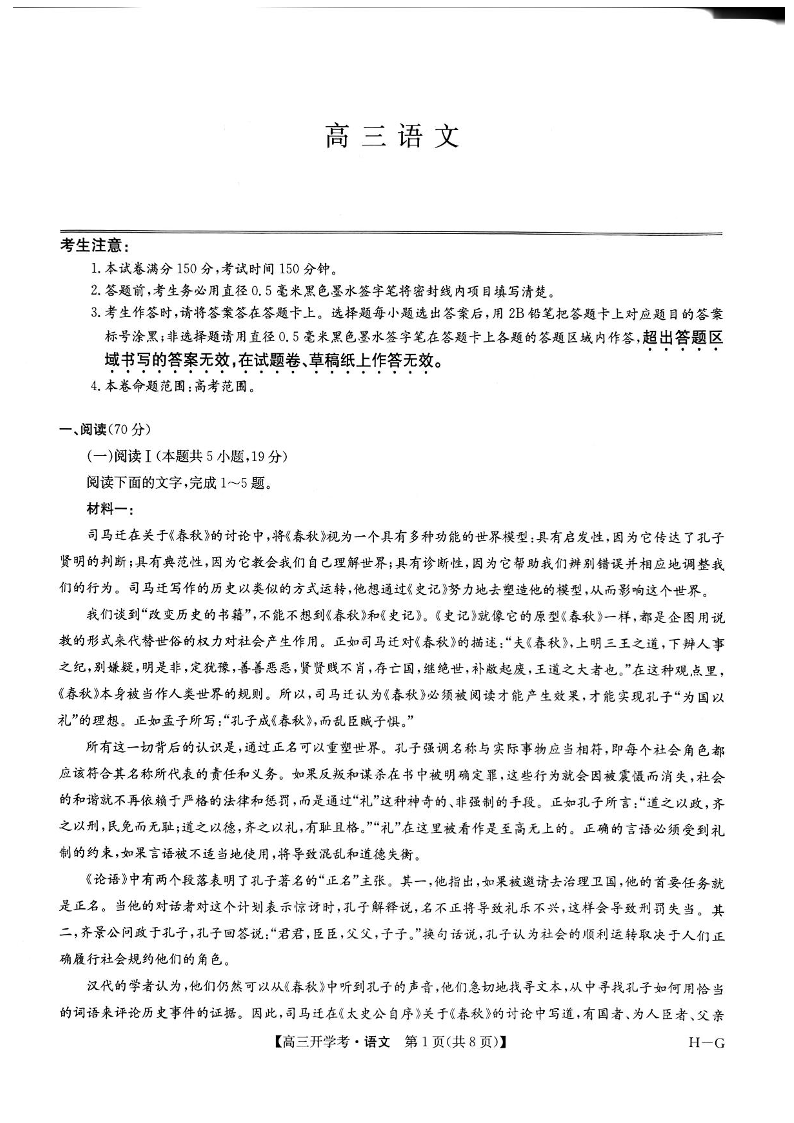 河南省九师联盟2024-2025学年高三下学期2月开学考试 语文(含答案).pdf