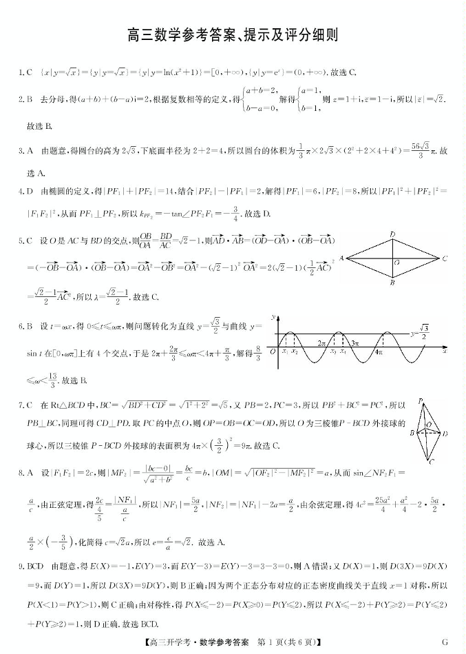 河南省九师联盟2024-2025学年高三下学期2月开学考试 数学答案.pdf