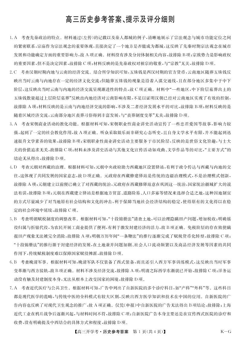河南省九师联盟2024-2025学年高三下学期2月开学考试 历史答案.pdf