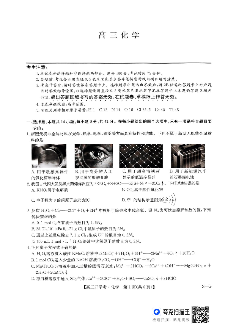 河南省九师联盟2024-2025学年高三下学期2月开学考试 化学(含答案).pdf
