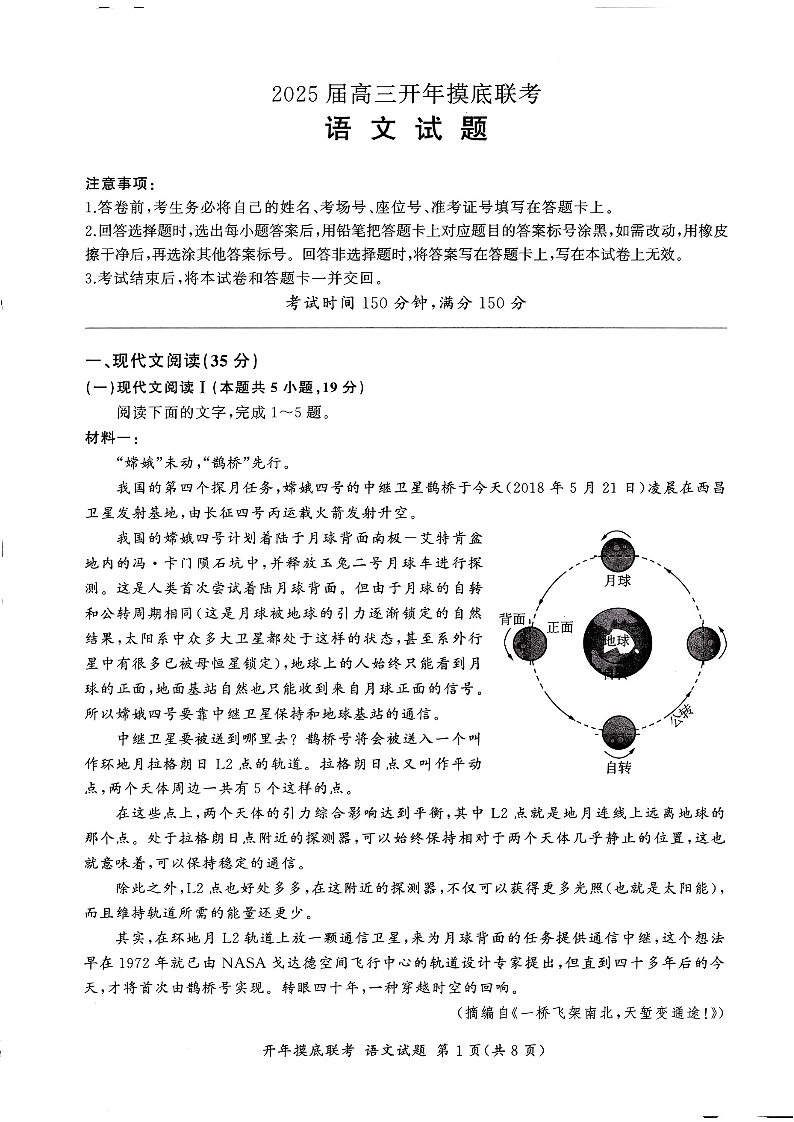 百师联盟2025届高三开年摸底联考 语文.pdf